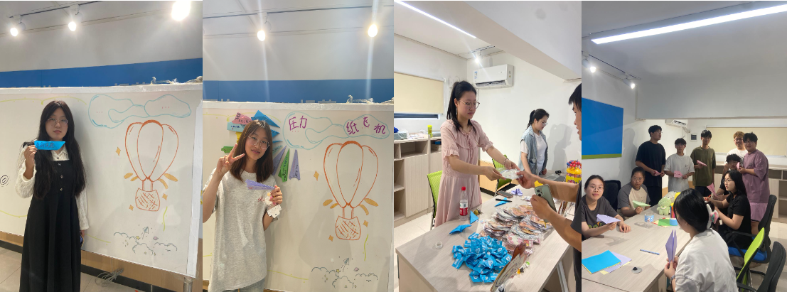 活动现场布置温馨且富有创意,吸引了众多学生踊跃参与。同学们在彩纸上倾诉各自的烦恼,内容涵盖学业压力、人际困扰、生活琐事等。随后,他们依据个人喜好,将烦恼化为手中多彩多样的纸飞机。通过这一手工制作过程,同学们不仅感受到了创造的乐趣,更将负面情绪转化为积极行动。