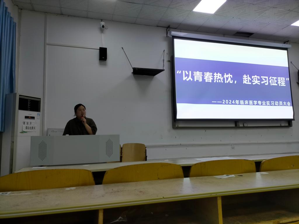 动员会上,专业负责人王洪涛、教研室主任琛、指导老师王丹分三组进行,首先回顾了同学们过去两年的学习历程,并对即将开始的十个月毕业实习的重要性进行了详细阐述。临床实习是医学教育理论联系实际的重要环节,是培养学生独立分析问题、解决问题能力和科学思维方法的重要途径;也是巩固和提高基础理论、临床知识、专业技能,加强学生临床诊疗技术综合训练的重要阶段。希望同学们珍惜学校和实习医院提供的平台,努力学习,在实践中巩固理论知识,积累工作和社会经验,提高临床操作技能,为未来的职业生涯打下坚实基础。