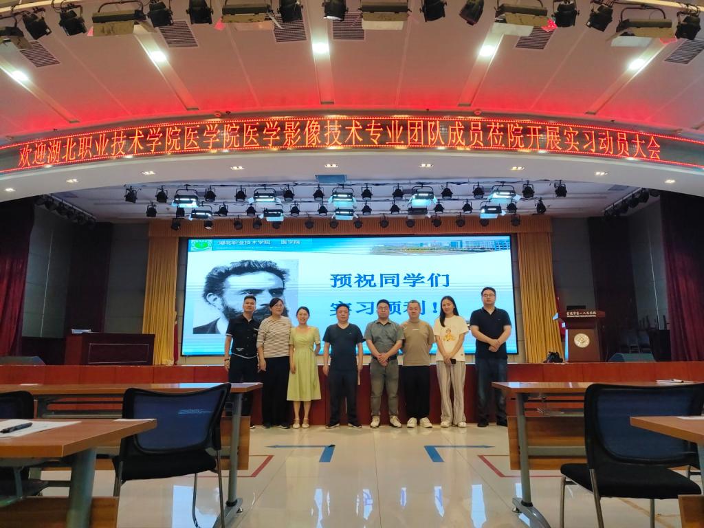 为了落实学校关于实习管理的有关规定,强化实习管理,明确实习内容,确保实习质量,根据欧冠中文官网的统一安排,2024年6月24日晚,医学影像技术专业在孝感市第一人民医院教学楼九楼会议厅召开了2022级实习动员大会。欧冠中文官网医学影像技术教研室全体成员、孝感市第一人民医院科教科徐月及周攀、喻坤、李智等三位辅导员全程参与了本次实习动员大会,会议由医学影像技术教研室陈新祥主任主持。