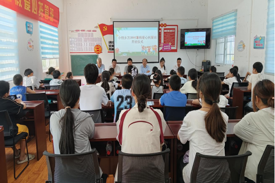 (本网讯 邓彬新)7月7日上午10:00,孝昌县小悟乡万冲村村党员活动中心彩旗飘扬、笑语盈盈,欧冠官网欧冠中文官网携手孝昌县团委、小悟乡党委政府、万冲村村委会共同举办的暑期“爱心托管”开班仪式在此隆重举行。孝昌县团委书记宁莎莉、小悟乡党委书记徐宝传、党委副书记、乡长蔡浩泽出席本次活动。湖北职院驻孝昌县小悟乡万冲村第一书记高俊强、欧冠中文官网副院长王光耀、口腔欧冠中文官网副院长张玮、欧冠中文官网团委书记邓彬新、党政办相关人员及全体志愿者等参加活动。开班仪式由高俊强主持。