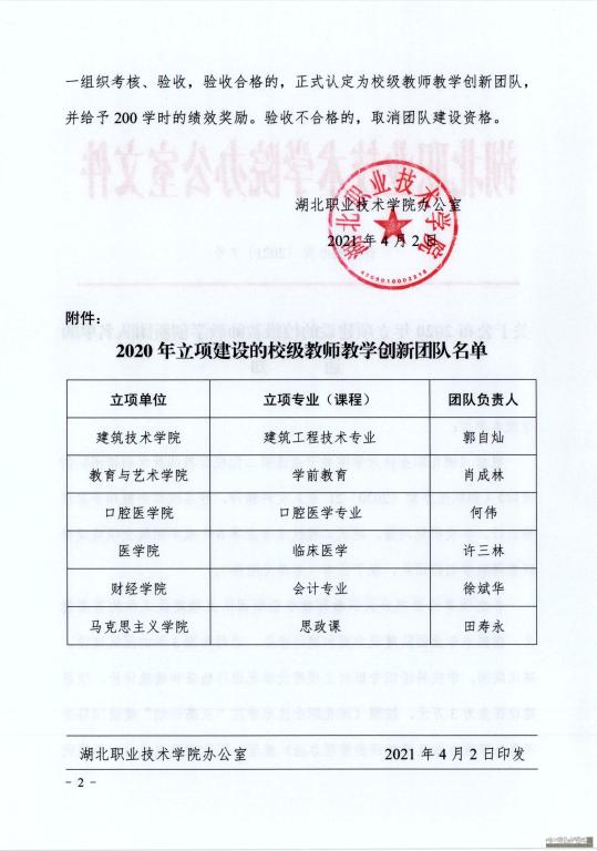关于公布2020年立项建设的校级教师教学创新团队名单的通知
