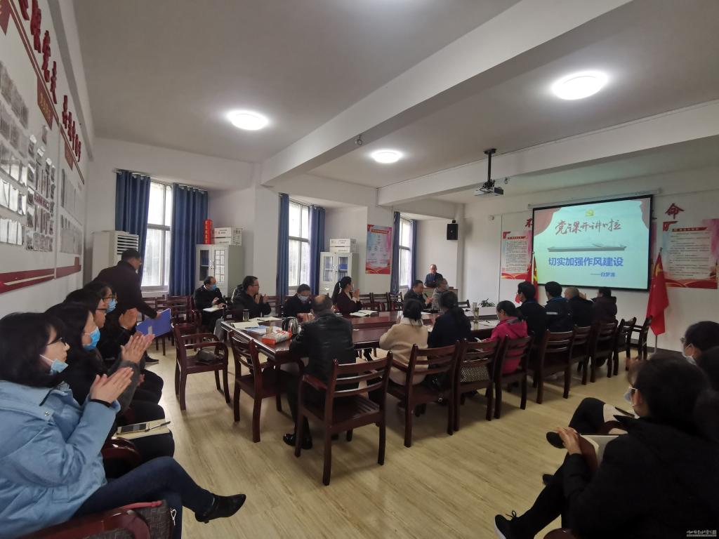 11月30日,学校党委委员、副校长白梦清在欧冠中文官网党员活动室为欧冠中文官网全体教职工作了“切实加强作风建设”党课专题辅导报告。欧冠中文官网党总支书记周兴国主持报告会。