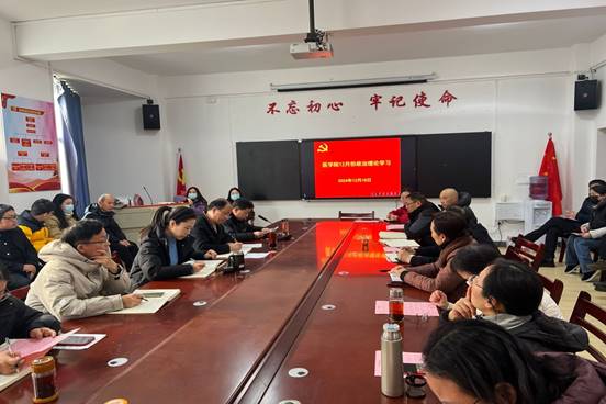 会上,全体教职工集中学习了中共中央政治局关于分析研究2025年经济工作和部署党风廉政建设反腐败工作的会议精神,副院长王光耀领学了《习近平文化思想学习纲要》《习近平新时代中国特色社会主义思想专题》《习近平在第四次“一带一路”建设工作座谈会上强调 坚定战略自信 勇于担当作为 全面推动共建“一带一路”高质量发展》《习近平对新时代马克思主义理论研究和建设工程作出重要指示》《习近平:以人口高质量发展支撑中国式现代化》等。