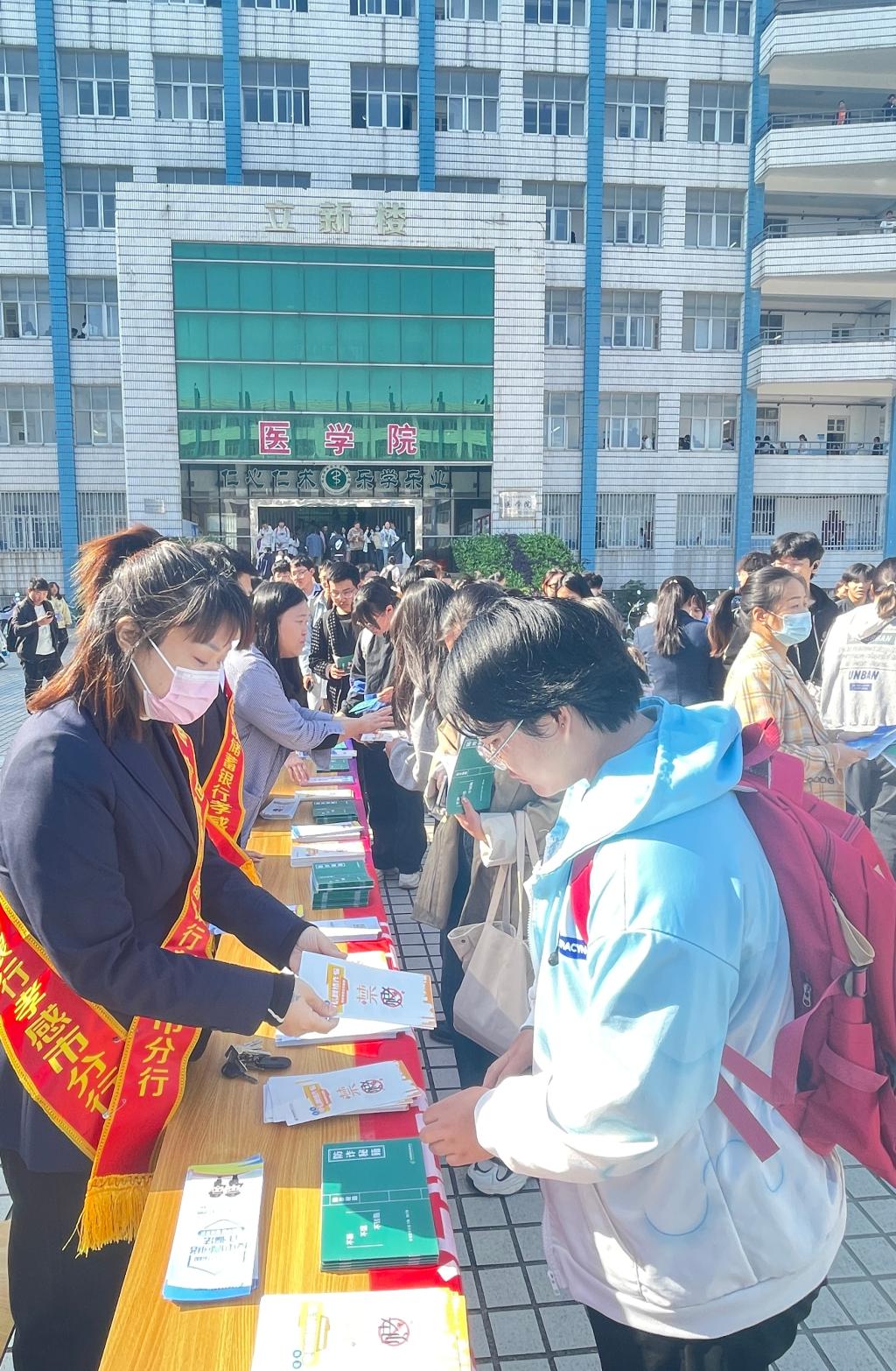10月23日上午,为落实党中央、国务院关于打击治理电信网络诈骗、跨境赌博的工作要求,打击涉赌涉诈黑色“资金链”,增强师生安全支付意识,欧冠中文官网联合中国邮政储蓄银行孝感市分行开展“反诈拒赌校园行”主题宣传活动。本次活动在立德楼广场举行,活动吸引了欧冠中文官网22、23级数百名师生参与。