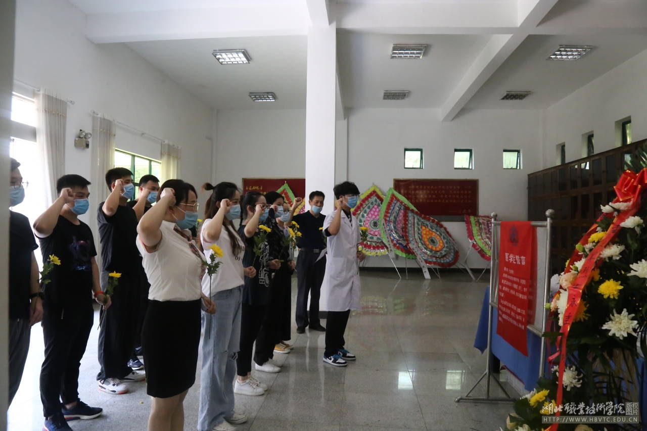 谭之平书记首先带领了大家共同学习了黄文军烈士抗击新冠肺炎疫情的英雄事迹,学生干部毛佳泓同学带领医学专业学生重温《医学生誓言》,学生代表杨熠威同学发言,随后同学们相继为黄文军烈士献上鲜花。陵园办公室主任黄振华带领全体师生共同参观了从大革命时期到2014年孝感籍革命烈士事迹陈列馆。