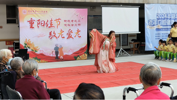 活动现场,志愿者们用热情的笑容和真挚的关怀,为老人们送上了节日的祝福。他们精心准备了丰富多彩的节目,有欢快的《桃花朵朵开》舞蹈表演,让老人们感受到了青春的活力;《我和我的祖国》动听的歌声,营造着愉悦的氛围,让在场的所有人为拥有一个强大的祖国而感到骄傲和自豪。在表演过程中,老人们专注地看着节目,脸上洋溢着幸福的笑容。他们不时地鼓掌喝彩,为志愿者们的精彩表演点赞。