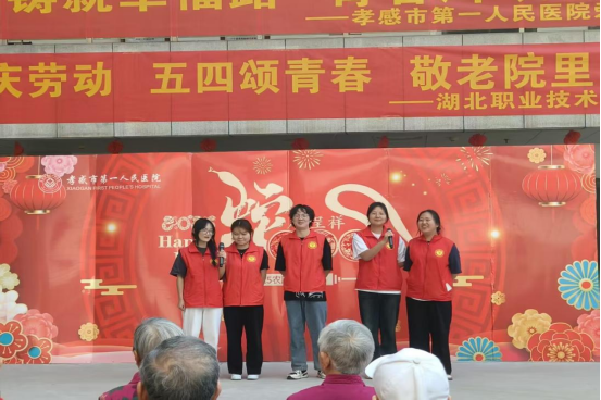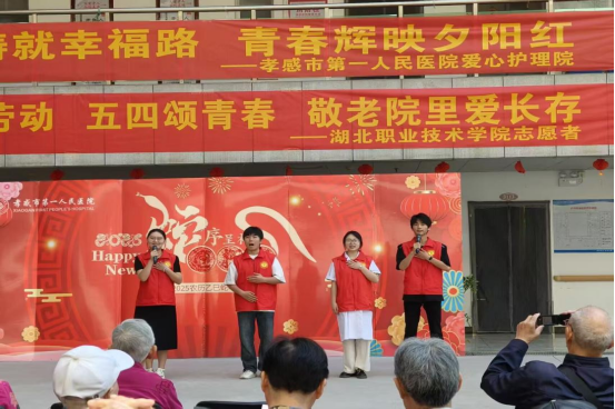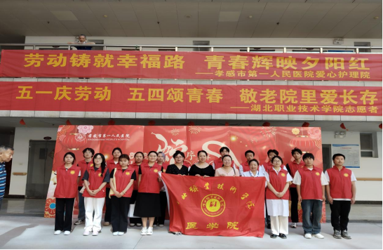 (本网讯 邓彬新 黄珑云)在“五一”劳动节和“五四”青年节来临之际,4月29日欧冠中文官网天使志愿服务队组织志愿者前往孝感市第一人民医院爱心护理院,开展“五一庆劳动,五四颂青春,敬老院里爱长存”志愿服务活动。通过文艺表演、互动陪伴等形式,志愿者们为老人送去关怀,同时致敬护工群体的辛勤付出,展现了医学生的社会责任感和青年担当。
