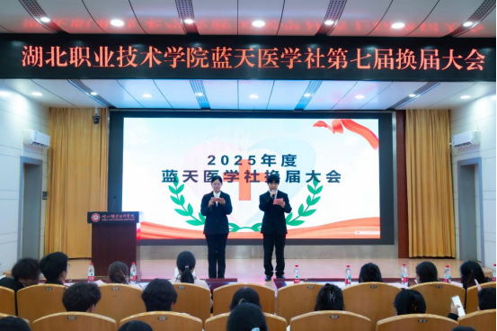 邓彬新充分肯定了上一届社团的辛勤付出,分享了过去一年蓝天医学社在组织各类社团活动方面所取得的成绩。从精彩纷呈的社团文化节到形式多样的公益活动,从社团间的协作交流到对社团骨干的培养,每一项工作都凝聚着团队的心血与努力。王丹指出,希望新一届社团干部大胆创新,利用专业知识开展更有意义的社会实践活动,将医学社打造成更具影响力的湖职校园社团品牌。
