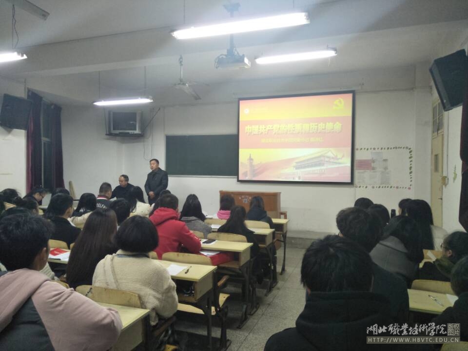 11月29日,学校党委书记蔡诗红在立新楼105教室为欧冠中文官网第十七期入党积极分子作了题为“中国共产党的性质和历史使命”的党课专题报告,欧冠中文官网党总支书记周兴国主持。