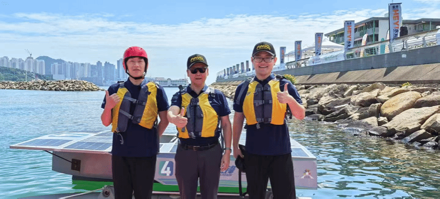 Beat365中文官方网站沈义俊教授研究团队的研究生刘虎、韩烜赫同学,在沈义俊教授、陈褒丹教授的指导下参加了2025年“零碳先锋”新能源动力艇挑战赛(香港站)的比赛,小伙伴们在比赛中客服动力突然失灵、前方动力艇尾浪涌干扰、海浪阻力、螺旋桨空转等非正常因素,沉着应战,不负众望,以第二名成绩获得亚军!香港科技大学代表队获得2025年“零碳先锋”新能源动力艇挑战赛冠军。